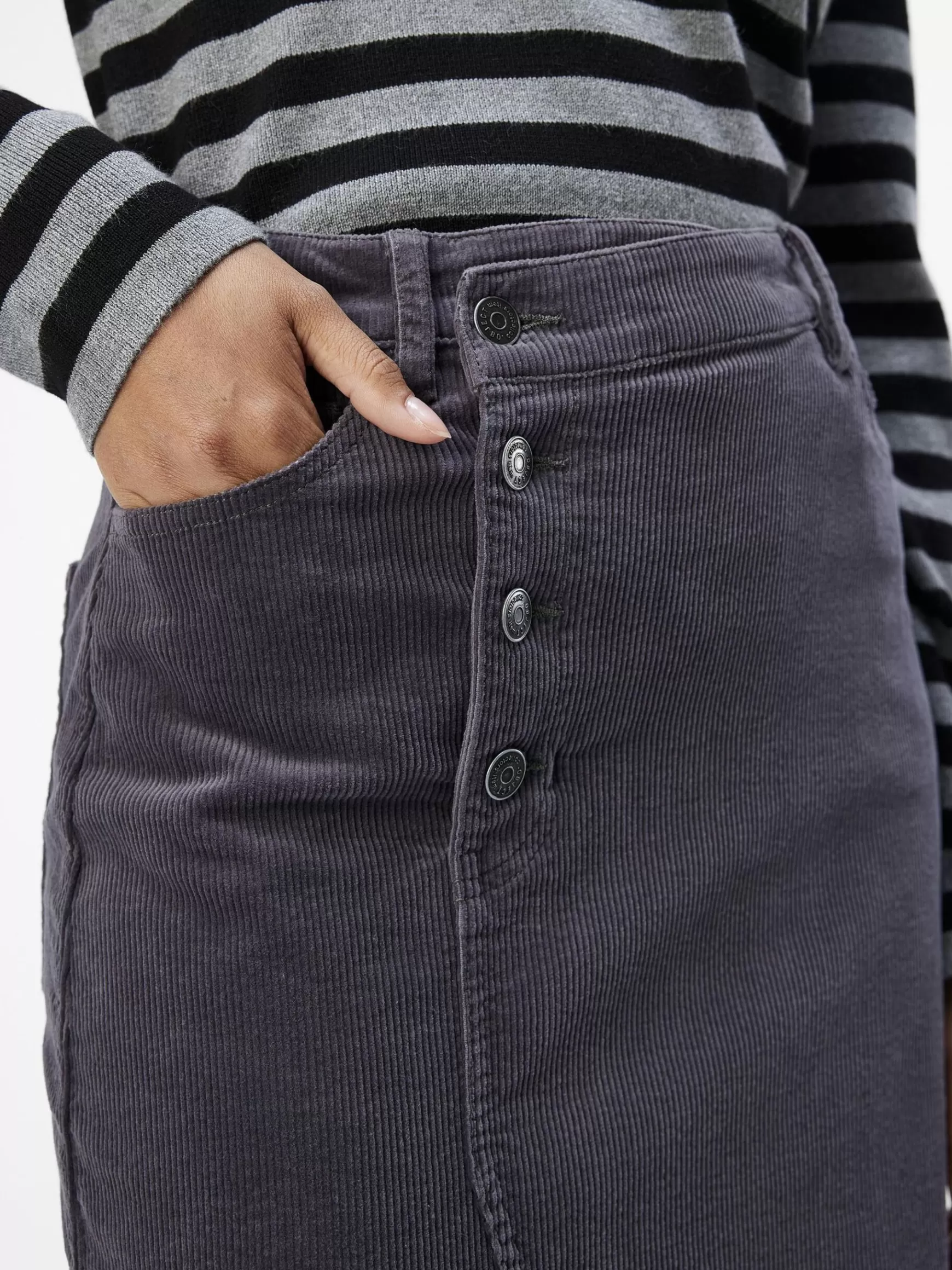 – Højtaljet maxinederdel i fløjl- Bæltestropper- Design med 5 lommer- Off-center knaplukning- Regular fitINDEHOLDER G…