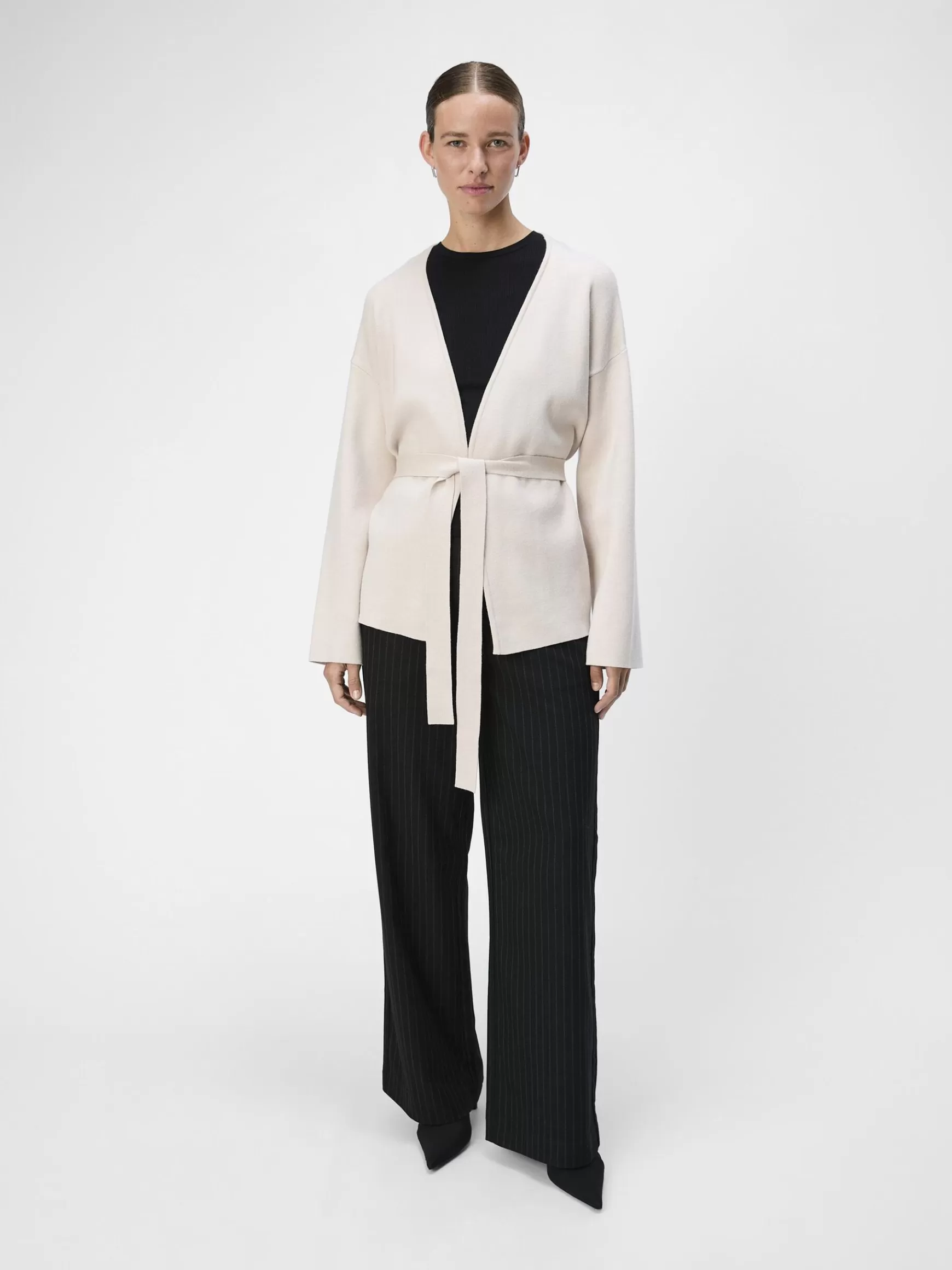 – Langærmet strikket slå-om-cardigan – V-hals- Bindebælte i taljen- Lave skuldre- Relaxed fit- Fremstillet med mere ansvarligt stof