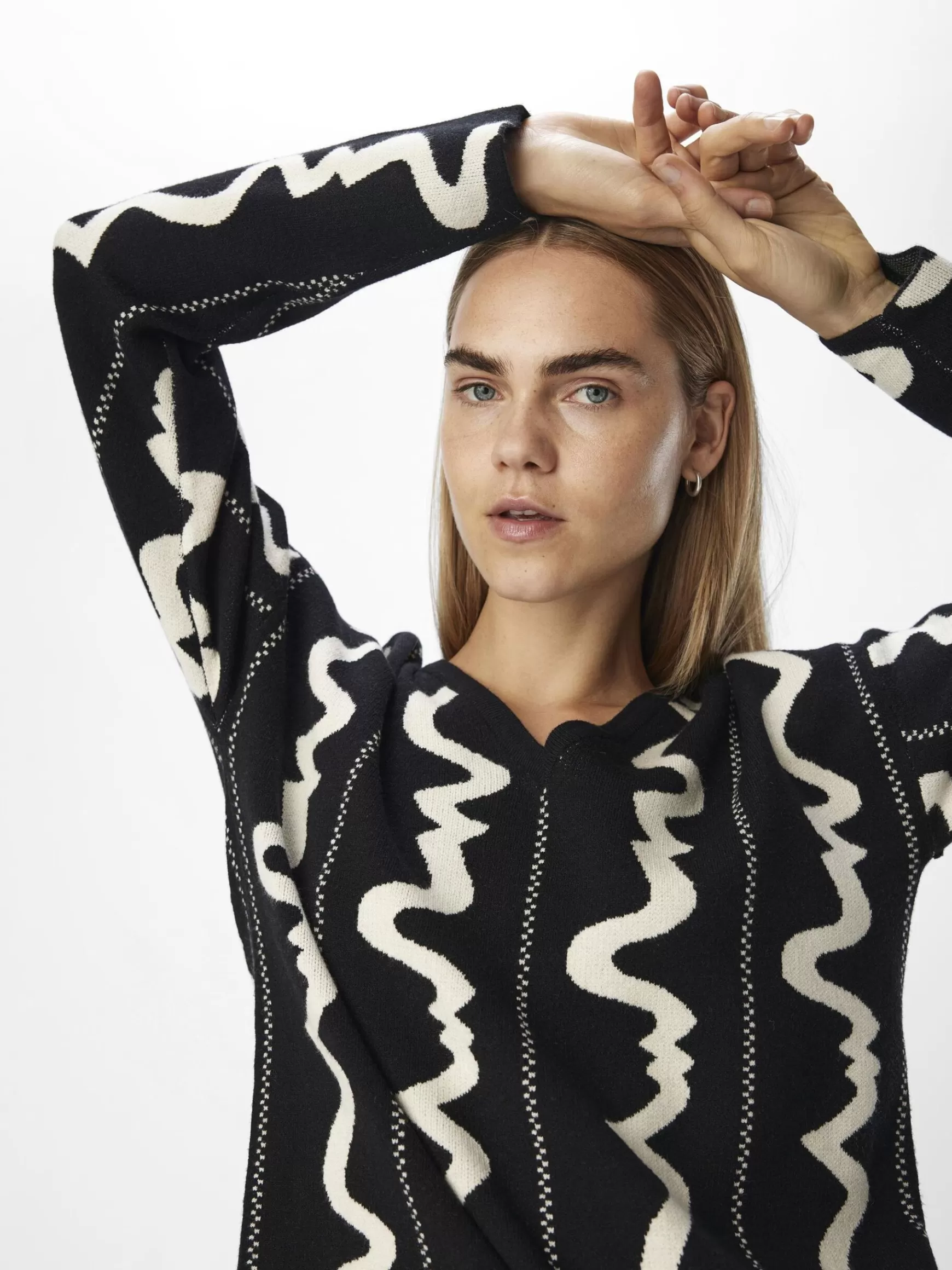 – Strikket trøje med V-udskæring- En del af et matchende sæt- Gennemgående print- Sænkede skjuldre lange ærmer- Almindelig pasform