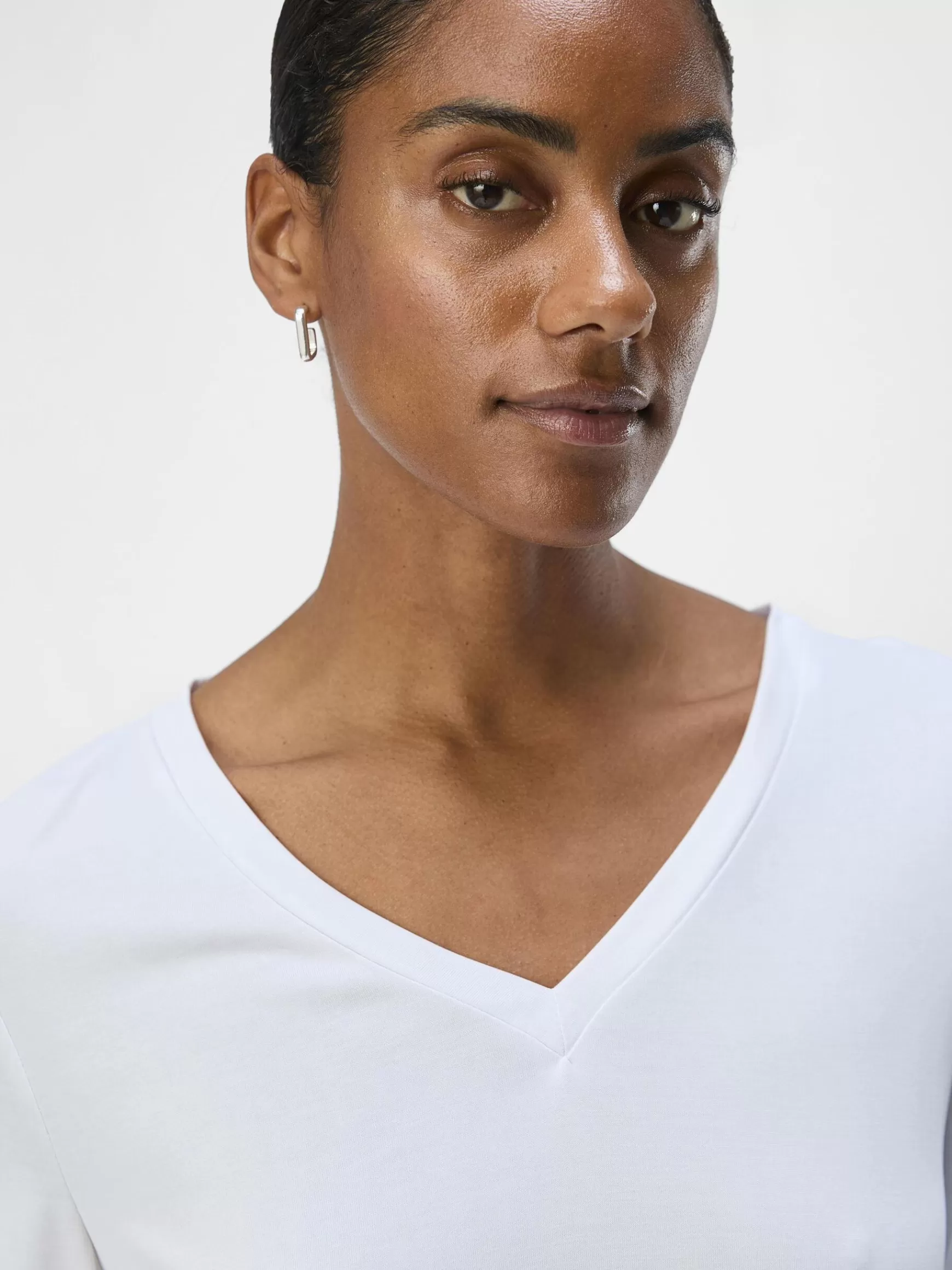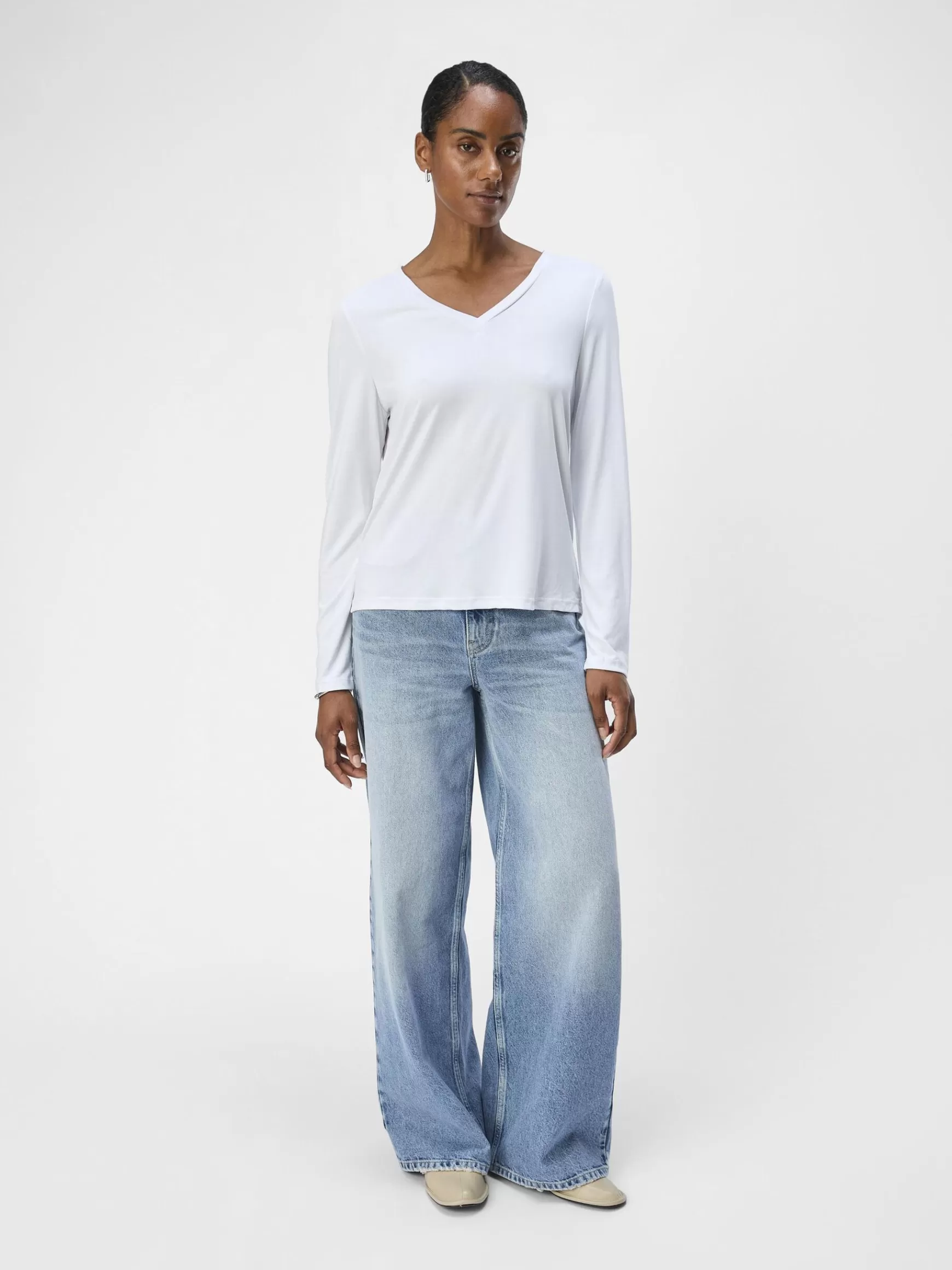 – Top med V-udskæring- Lange ærmer- Jerseystof- Slim fit