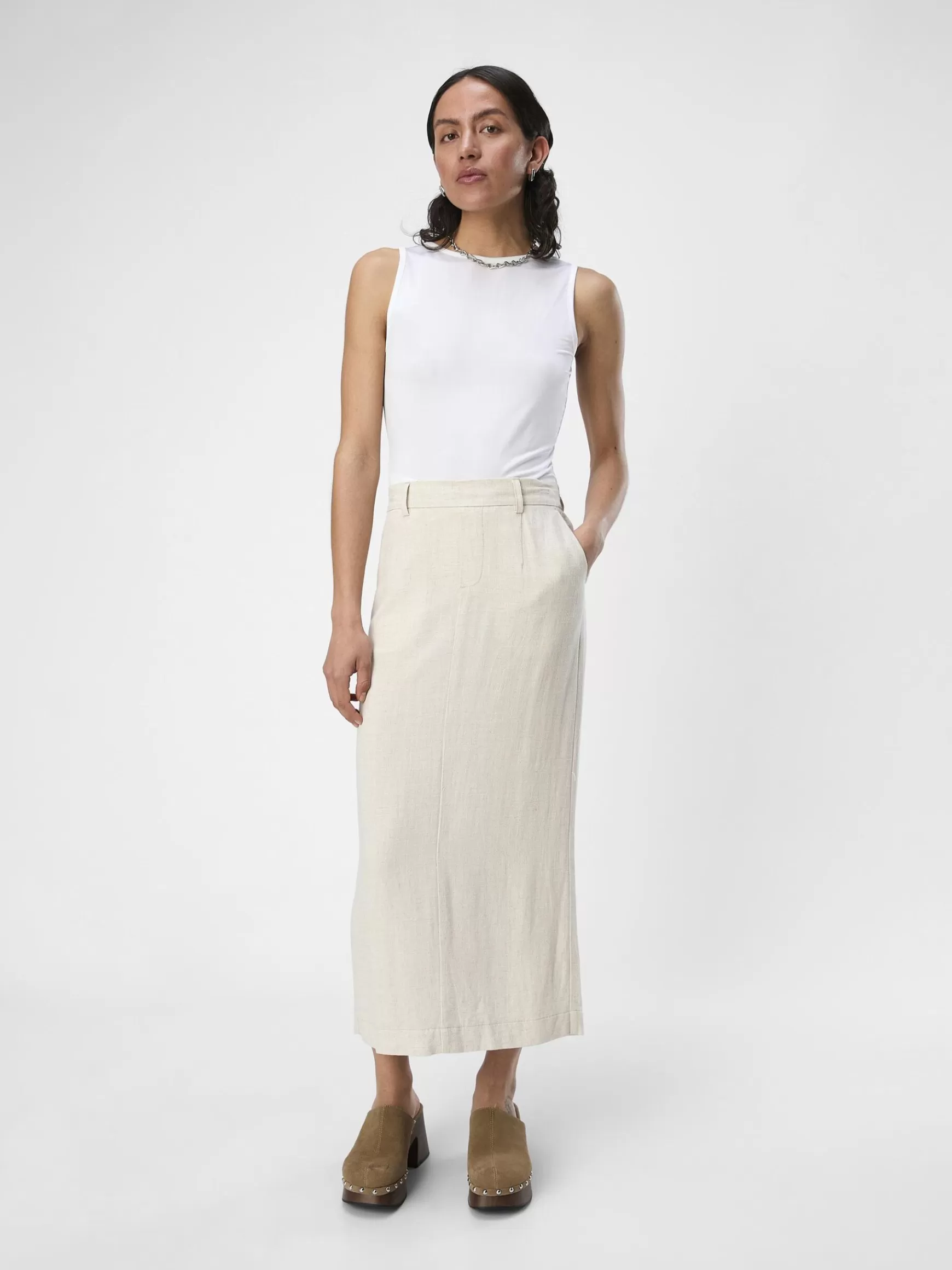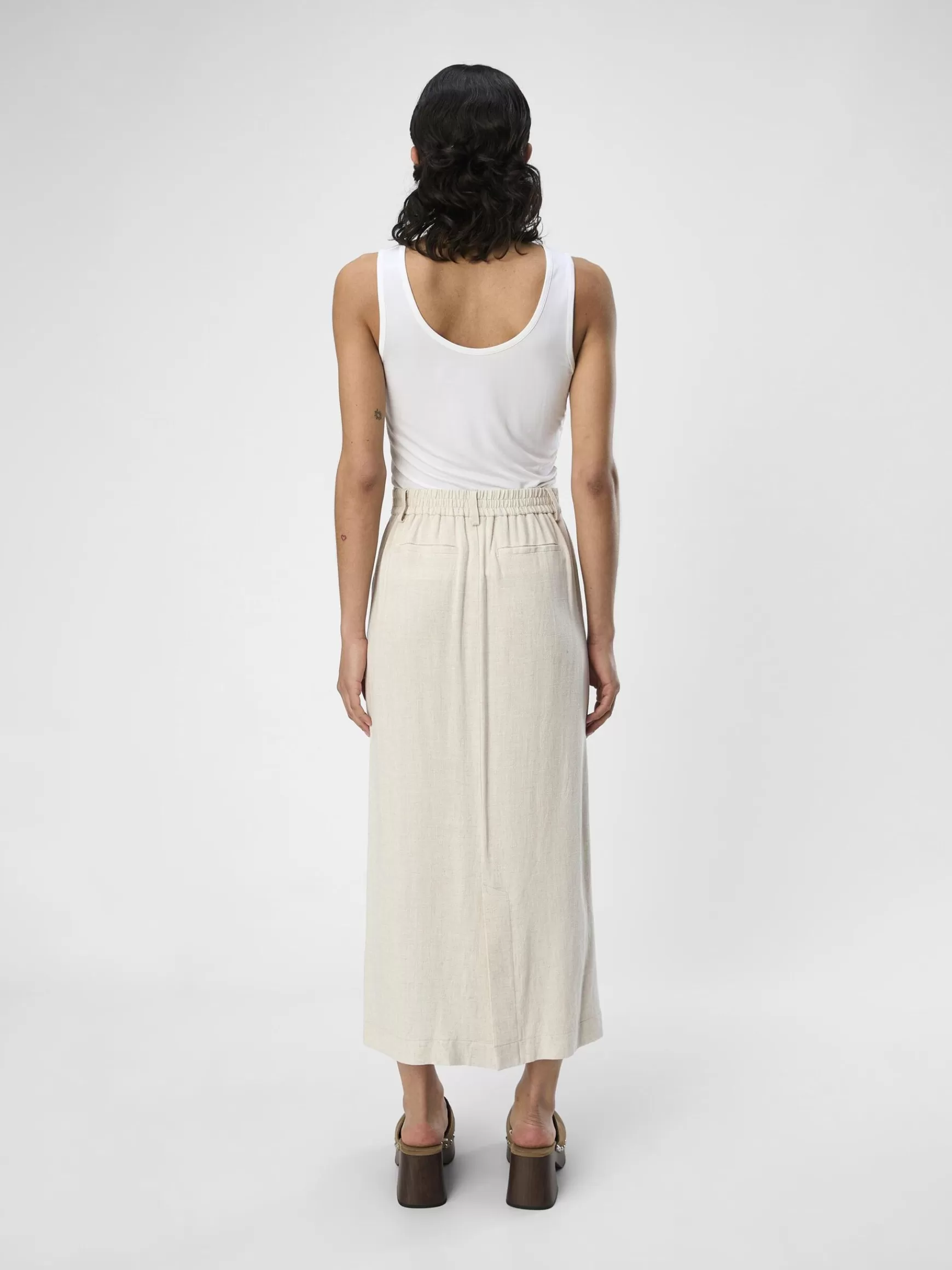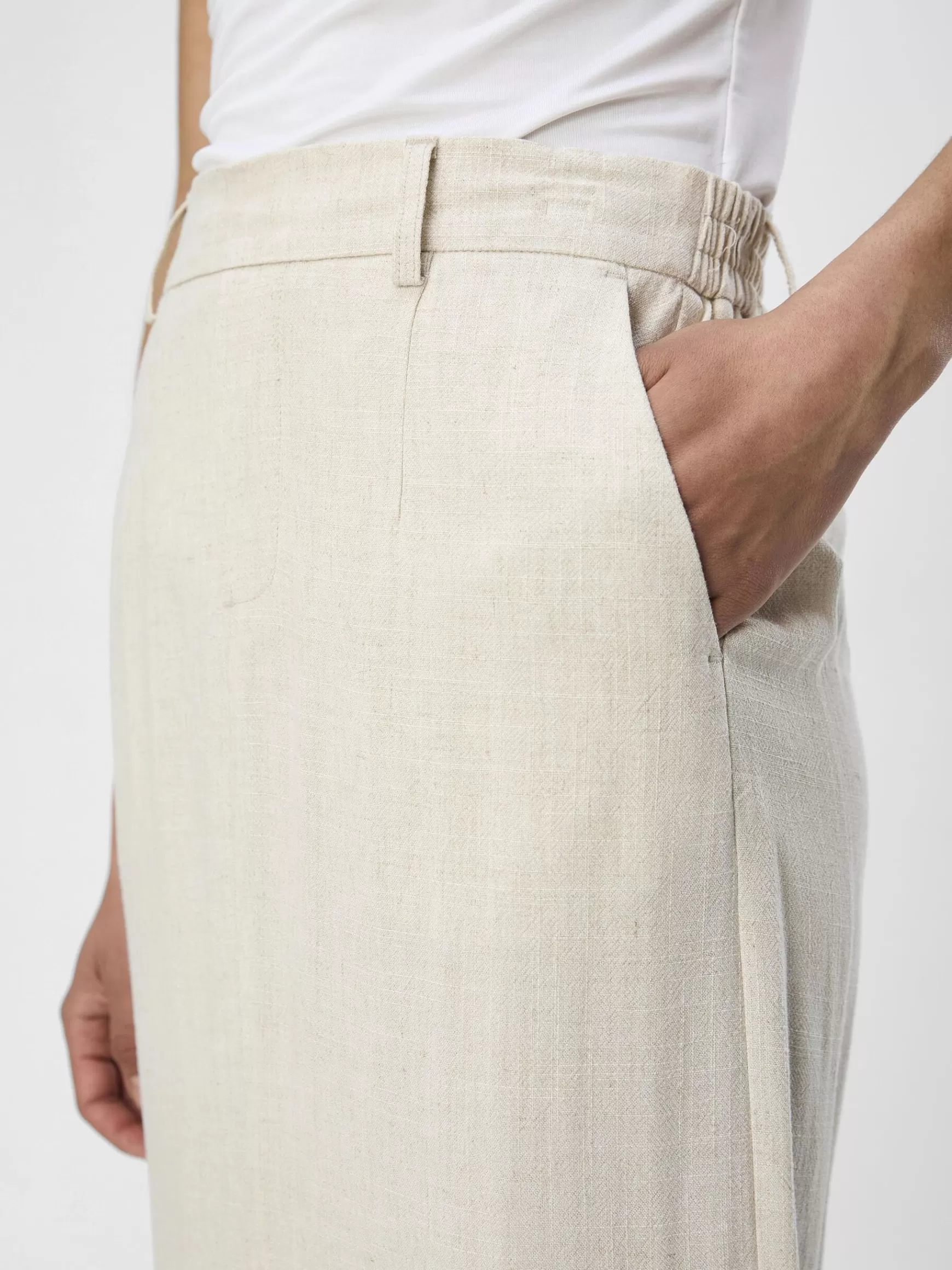-Lang pencilnederdel i hørblanding-En del af et matchende sæt-Elastisk mellemhøj talje-Med falsk gylp-Slidsdetalje bagpå-Bæltestropper-Sidelommer-Stolpelommer bagpå-Uforet-Regular fit-Lavet med mere ansvarlige materialer