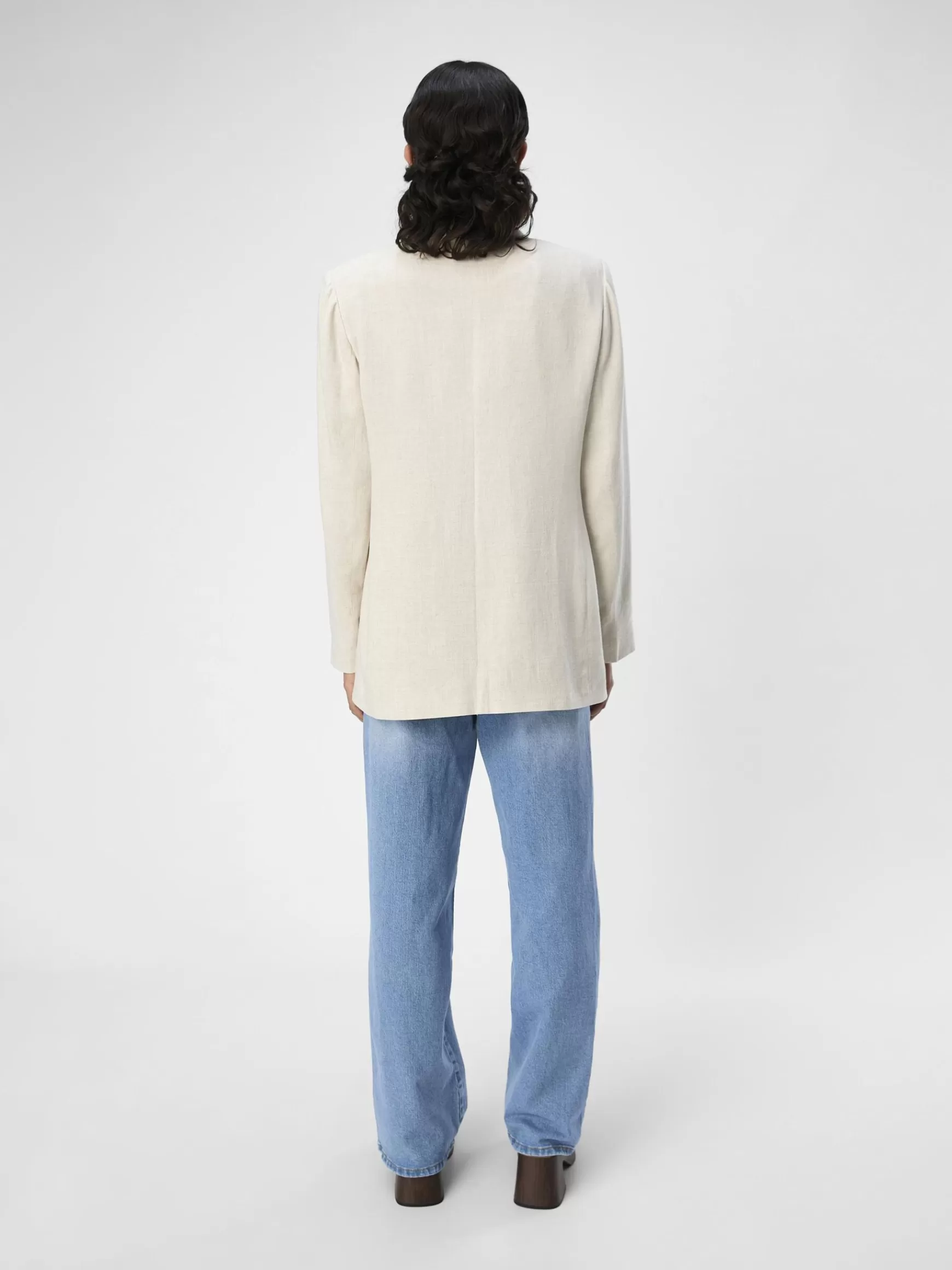 – Enkeltradet blazer i hørblanding- Hakket revers- Stolpelommer foran med flapper- Fastgørelse med en enkelt knap- Foret- Almindelig pasform- Fremstillet med mere ansvarligt stof