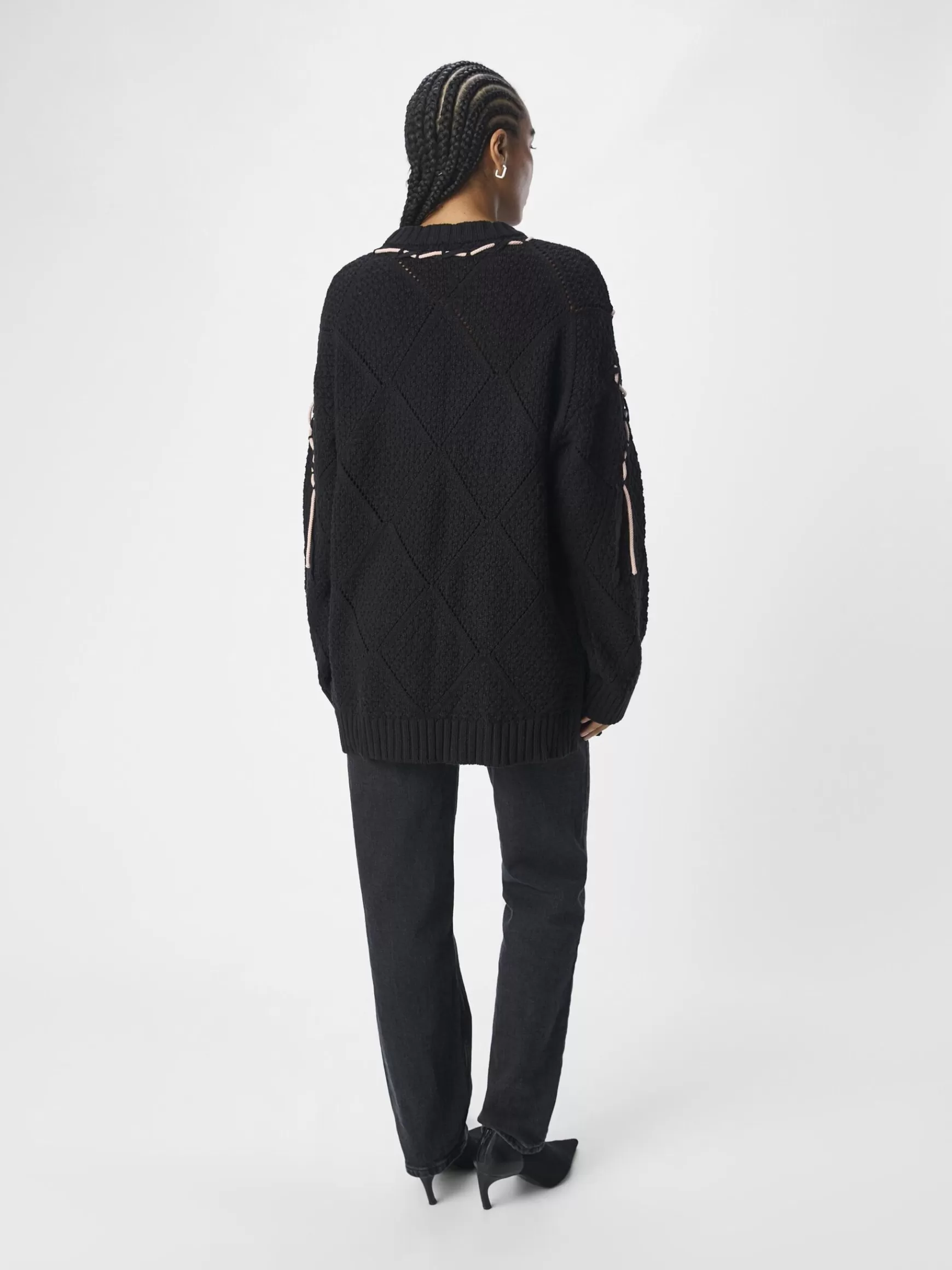 – Longline strikket trøje- Detaljeret strik- Rund hals- Lange raglanærmer- Chunky ribbede kanter- Oversized fit